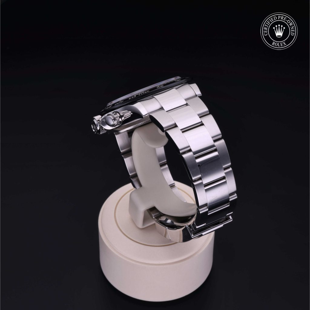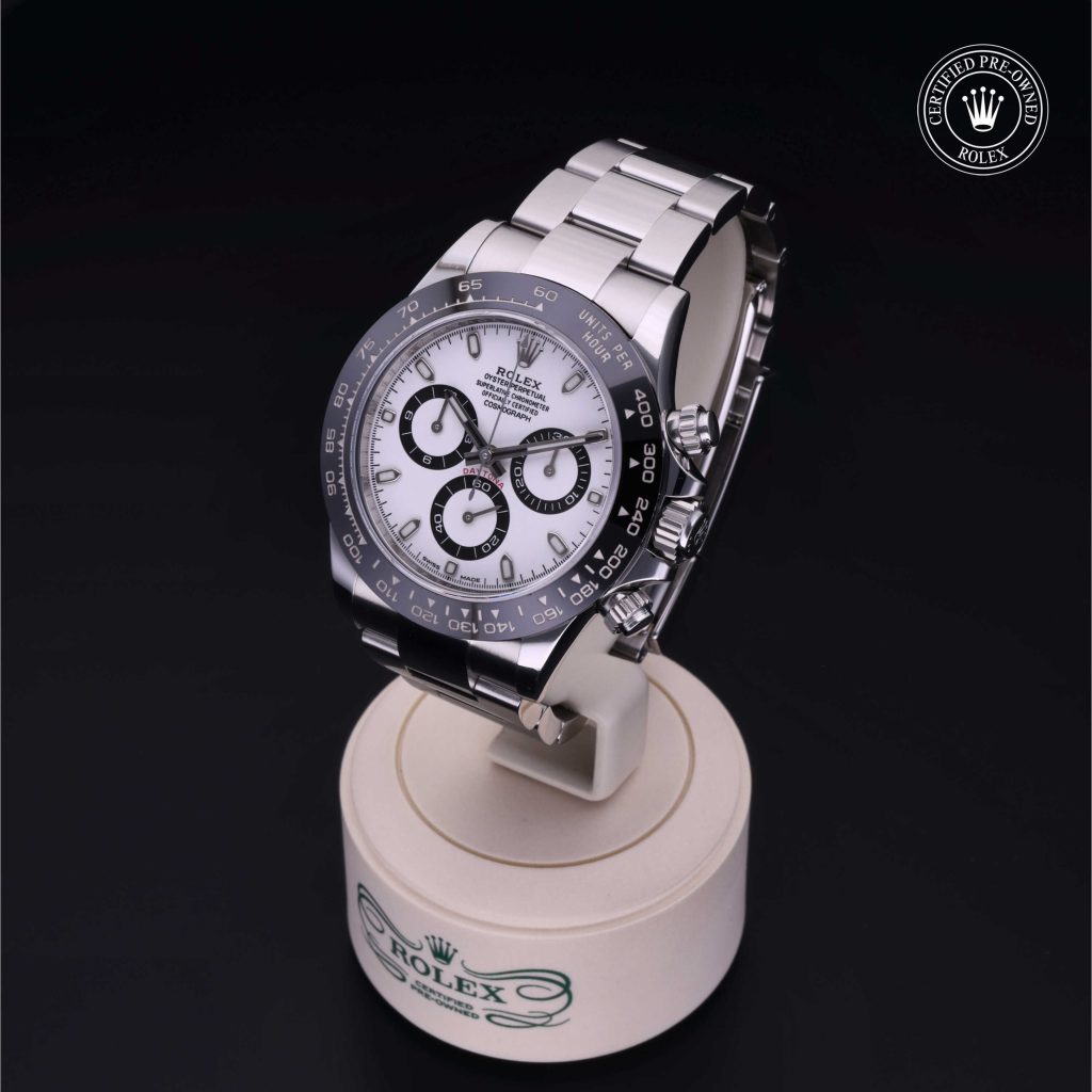 L’Oyster Perpetual Cosmograph Daytona, modello emblematico presentato nel 1963, è stato progettato per rispondere alle esigenze dei professionisti delle gare automobilistiche. Oggi questo cronografo è leggendario per la sua affidabilità, grazie al suo movimento meccanico ad alte prestazioni sviluppato e realizzato interamente da Rolex. Utilizzando la scala tachimetrica sulla lunetta, è possibile misurare gli intervalli di tempo e determinare la velocità media.