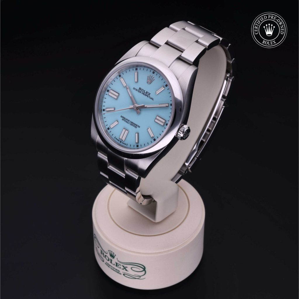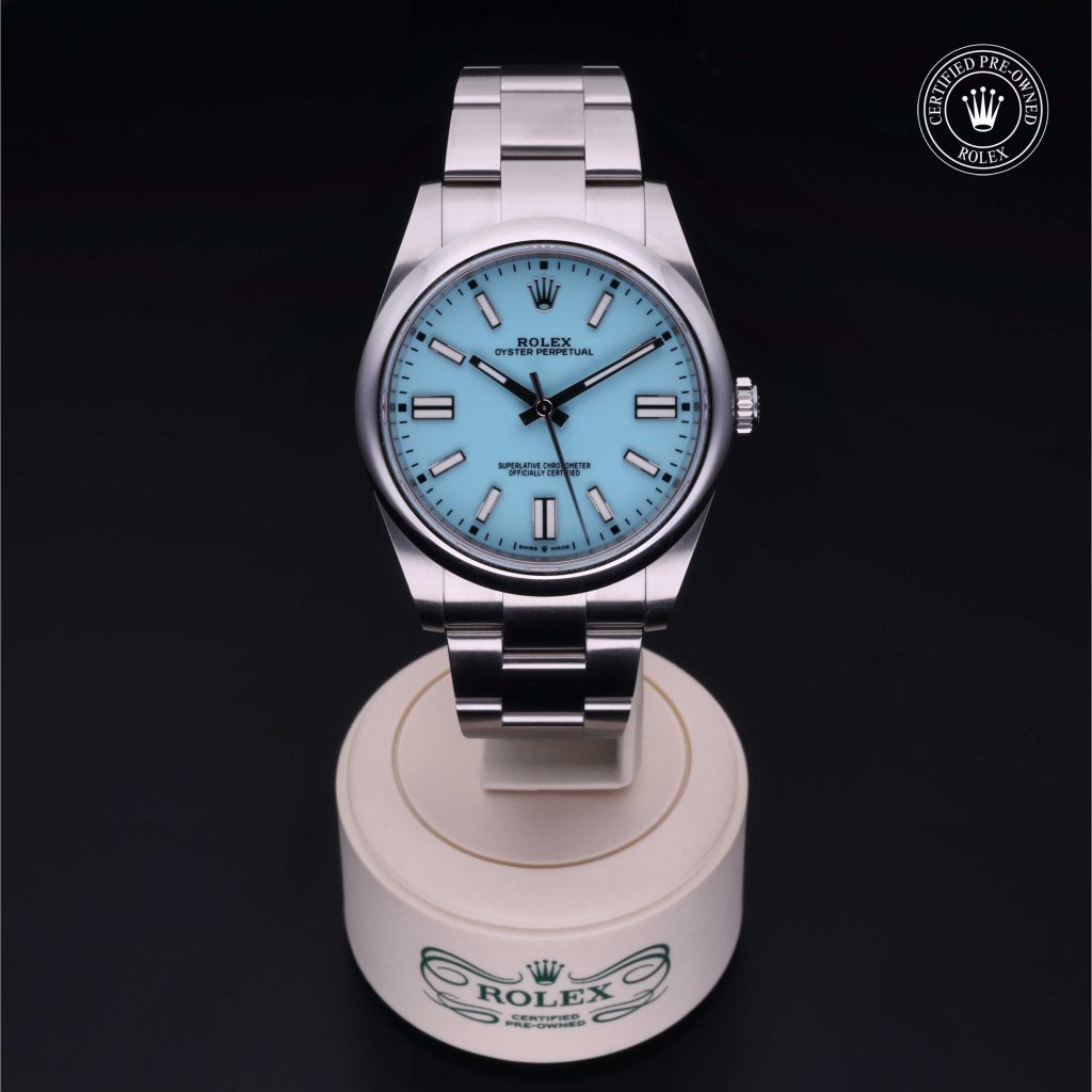 L’Oyster Perpetual beneficia di tutte le caratteristiche fondamentali della collezione Oyster Perpetual: l’impermeabilità della cassa Oyster, il movimento meccanico a carica automatica con rotore Perpetual e l’eccellente precisione cronometrica.