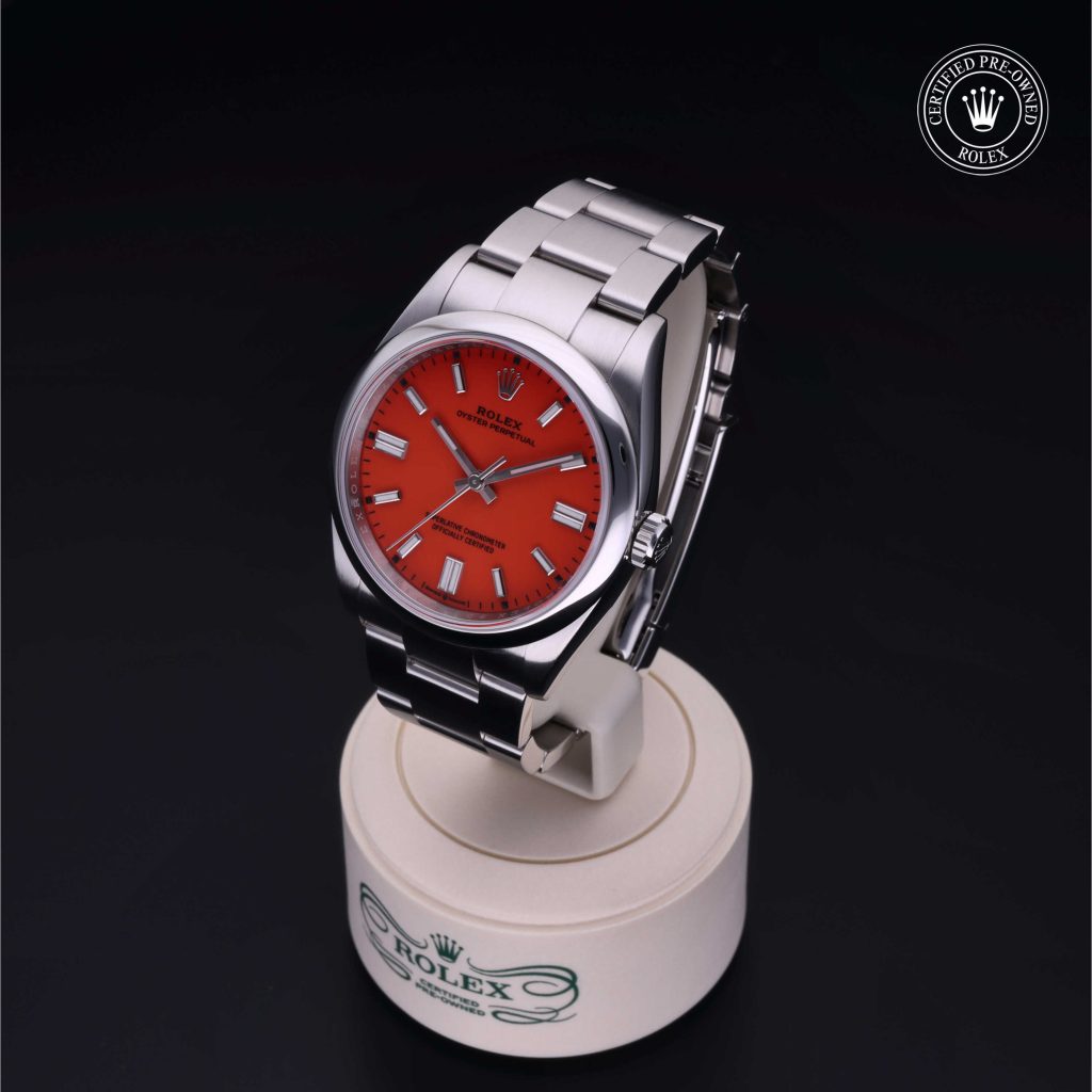 L’Oyster Perpetual beneficia di tutte le caratteristiche fondamentali della collezione Oyster Perpetual: l’impermeabilità della cassa Oyster, il movimento meccanico a carica automatica con rotore Perpetual e l’eccellente precisione cronometrica.