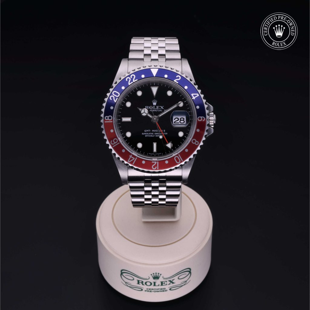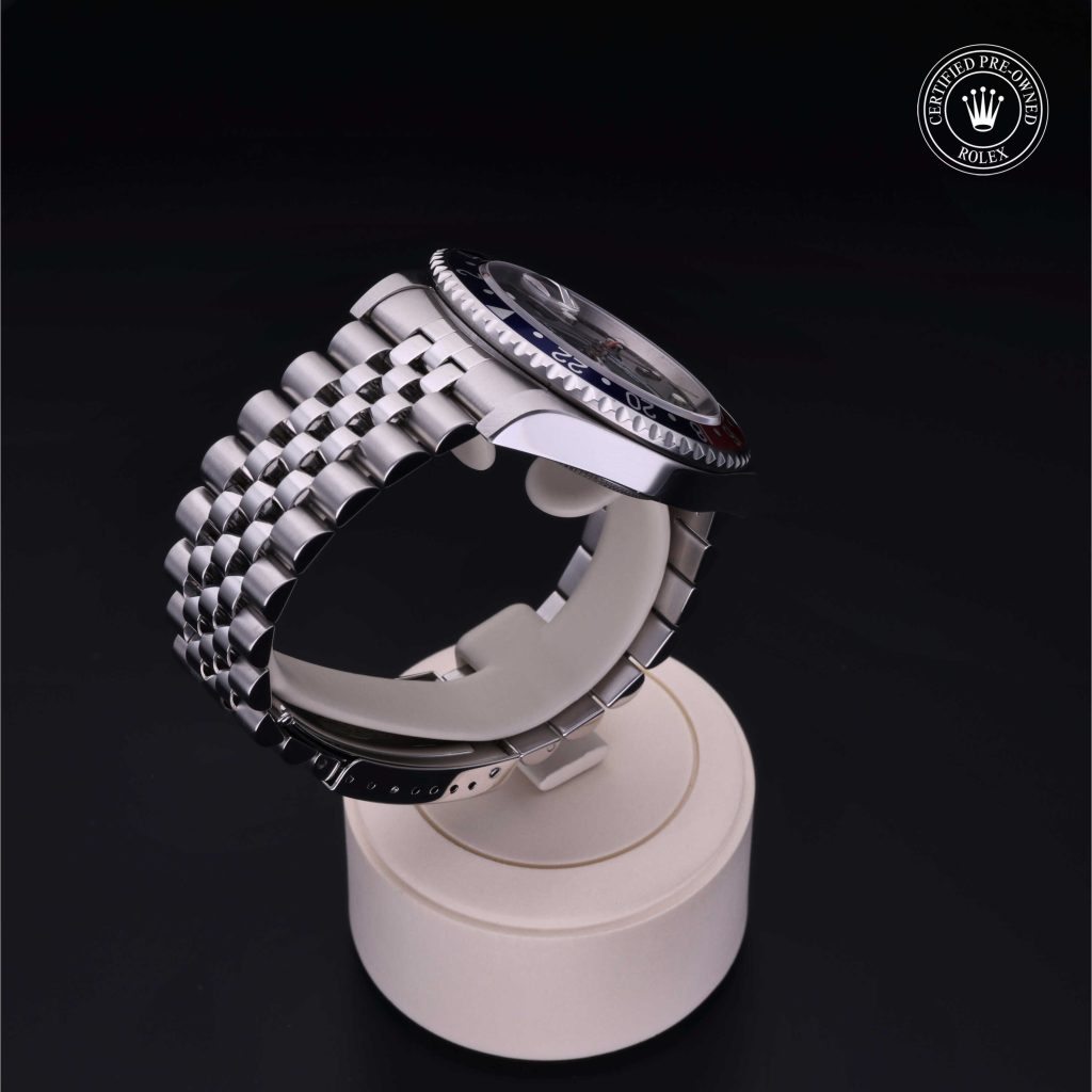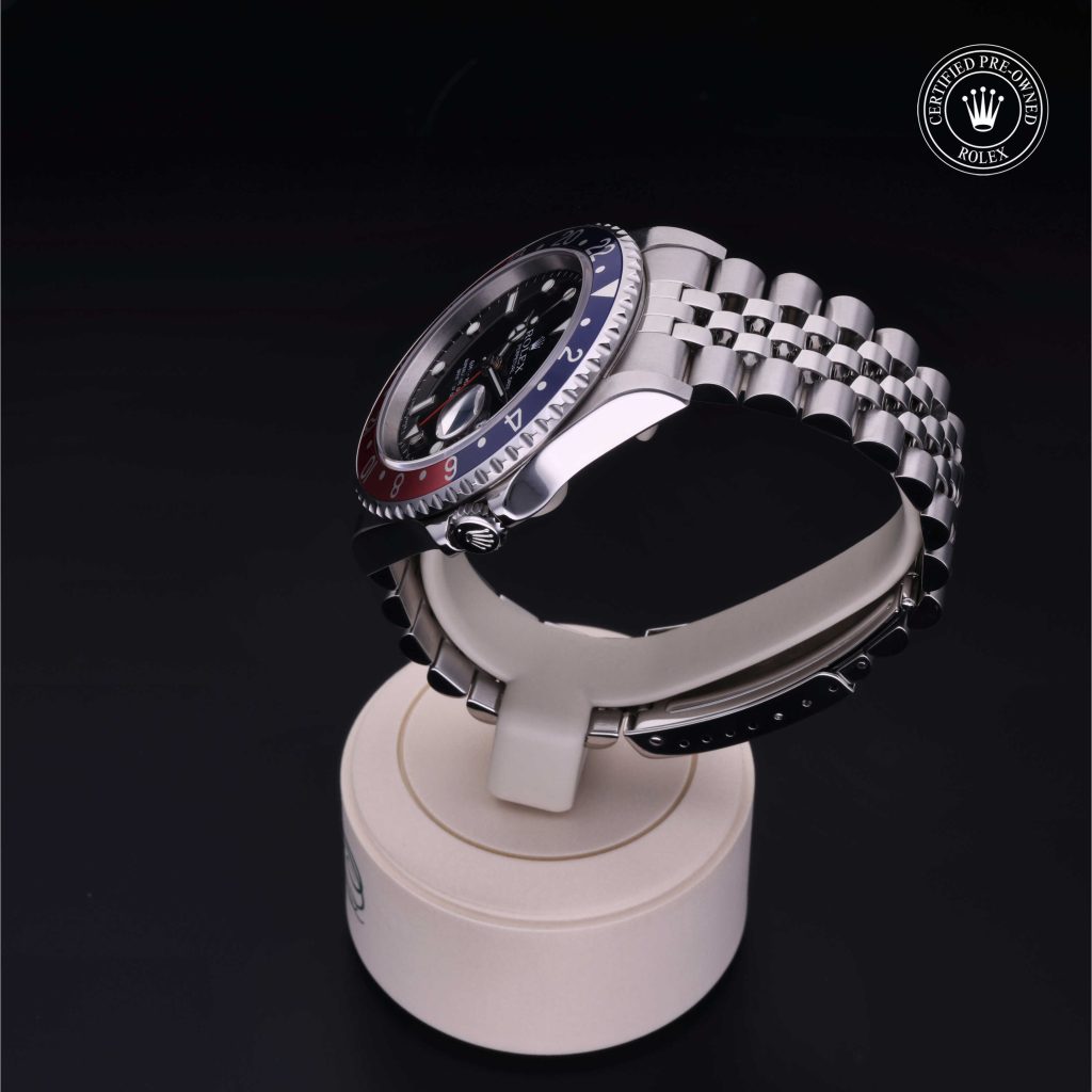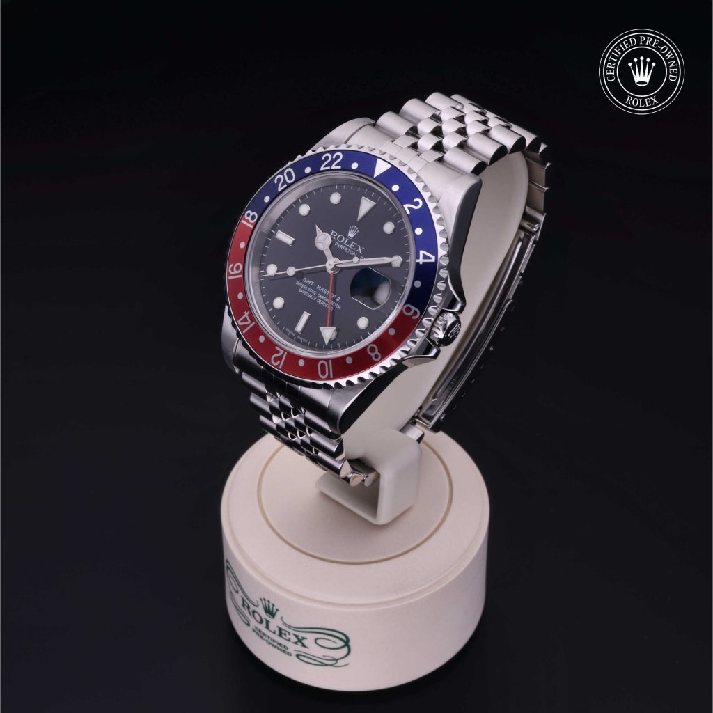 Presentato nel 1982, l’Oyster Perpetual GMT-Master II presenta l’emblematico disco della lunetta bicolore, oggi realizzato in ceramica ad alta tecnologia, e indica simultaneamente l’ora di due fusi orari. È il diretto discendente del GMT‑Master originale lanciato nel 1955, che è stato rapidamente adottato dai piloti transatlantici come ausilio alla navigazione.