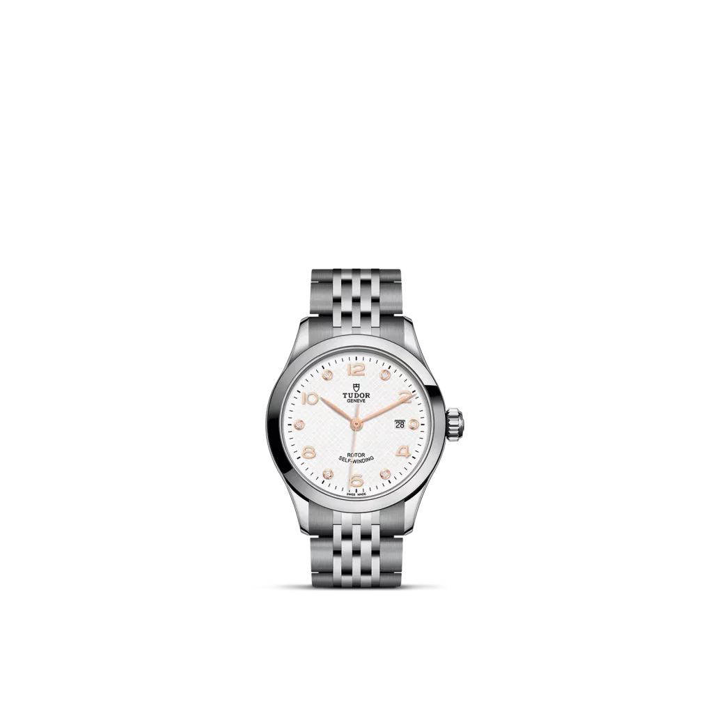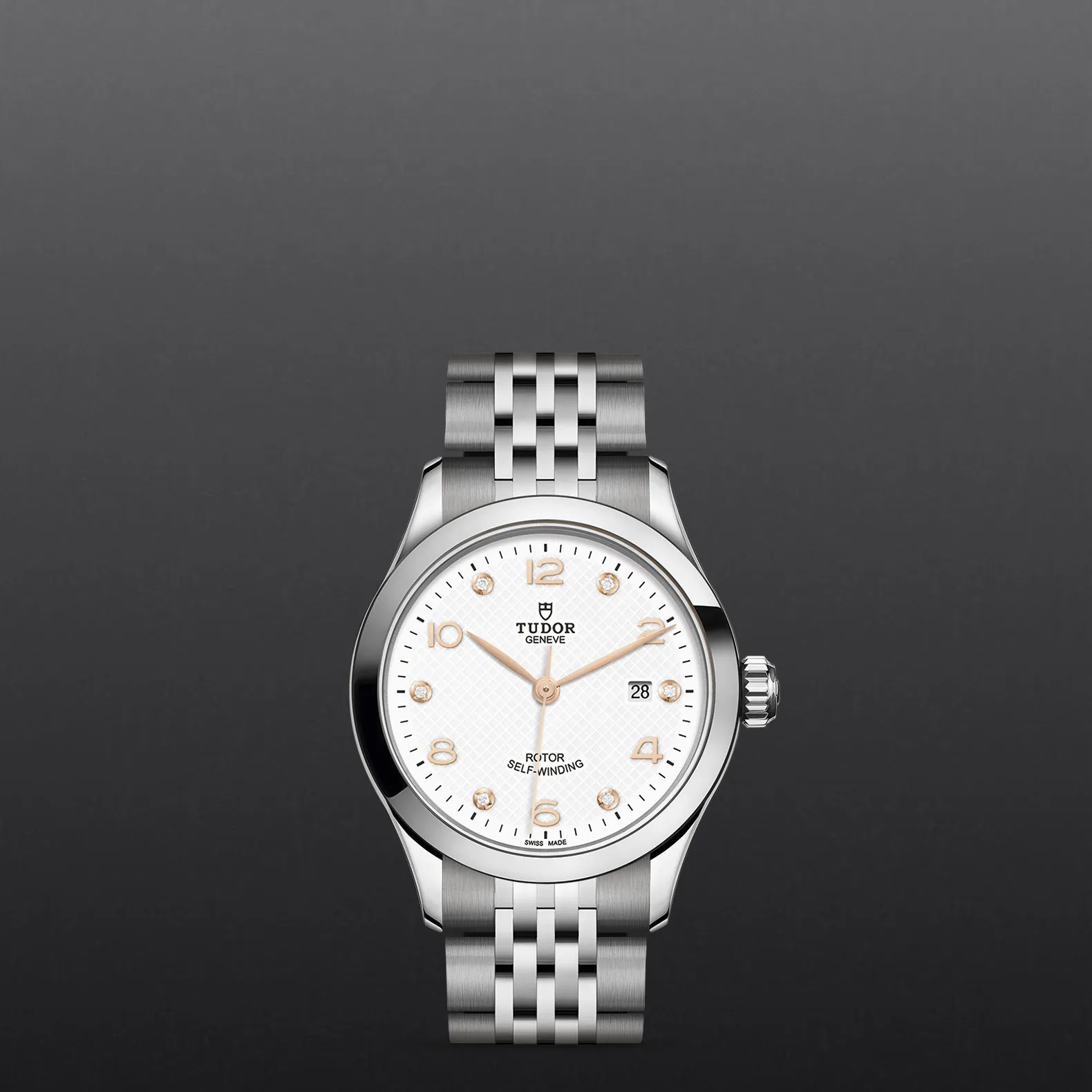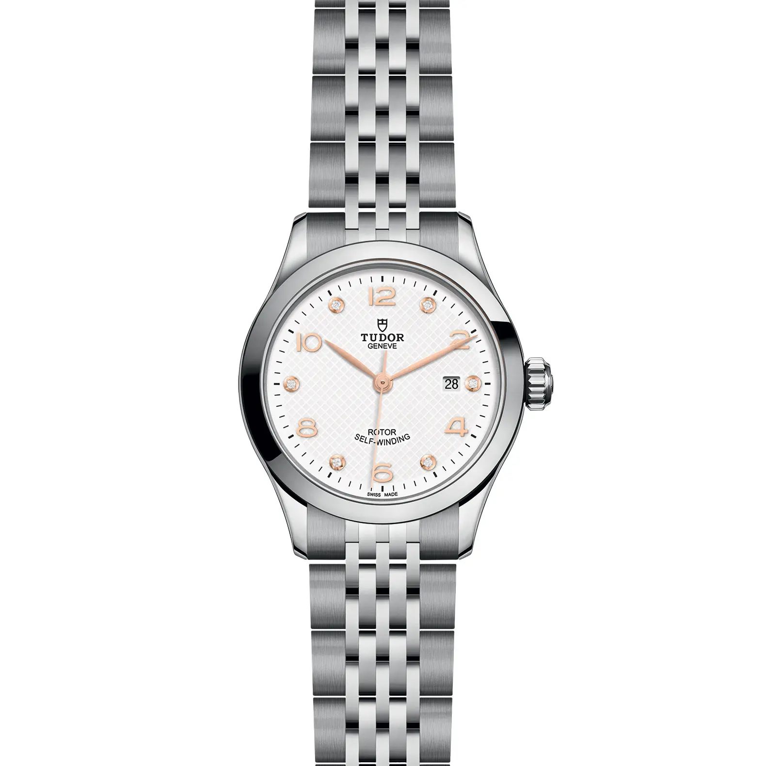 Cassa in acciaio, 28 mm, Quadrante bianco con diamanti