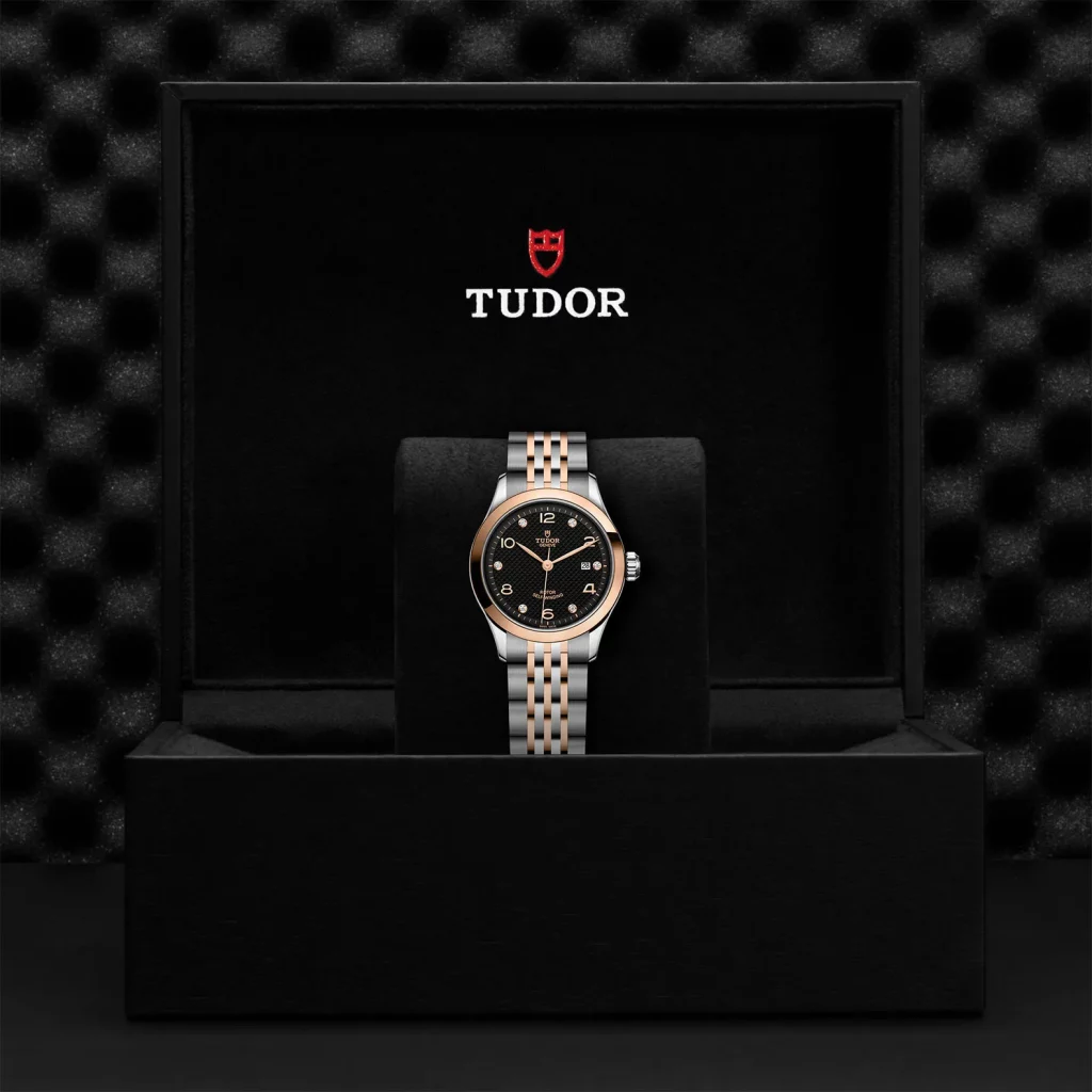Corona di carica a vite in acciaio con il logo TUDOR in rilievo