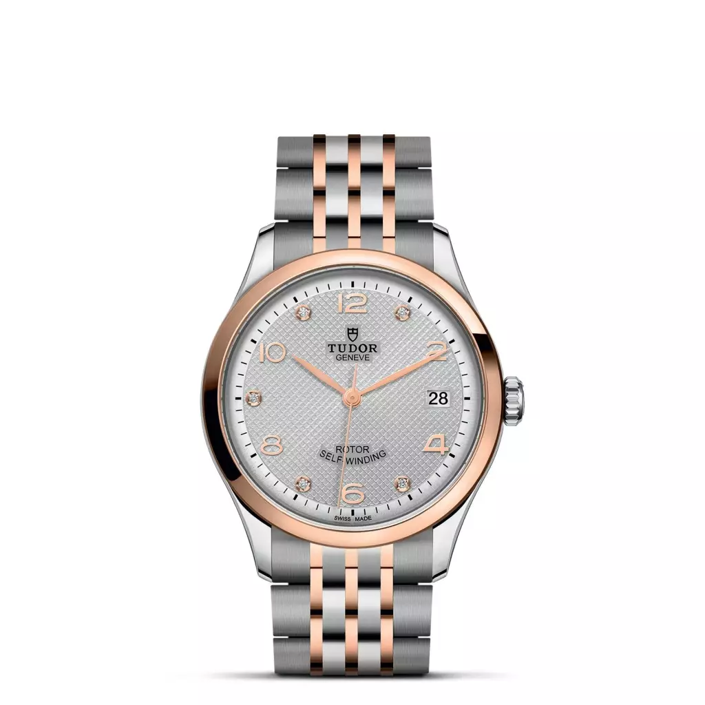 Prima maglia centrale in oro rosa, a ore 6 e 12. Maglie centrali restanti in acciaio rivestito da uno strato di oro rosa 18 ct. di 0,2 mm