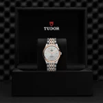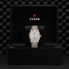 Corona di carica a vite in acciaio con il logo TUDOR in rilievo