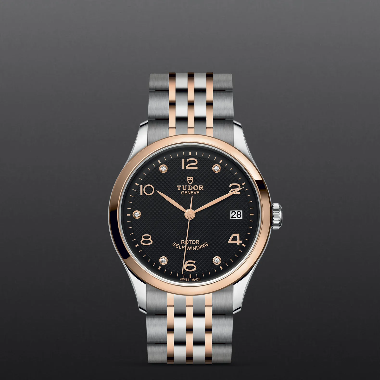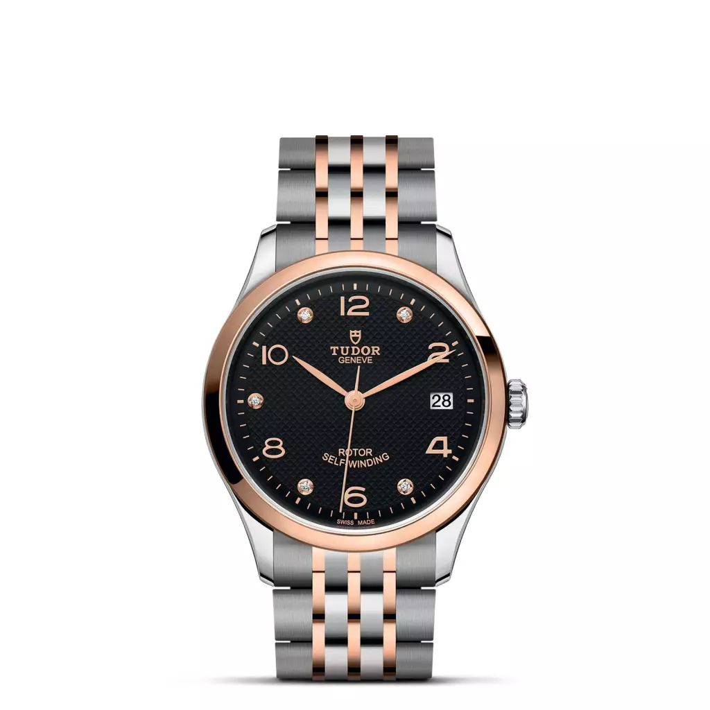Prima maglia centrale in oro rosa, a ore 6 e 12. Maglie centrali restanti in acciaio rivestito da uno strato di oro rosa 18 ct. di 0,2 mm