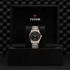 Corona di carica a vite in acciaio con il logo TUDOR in rilievo