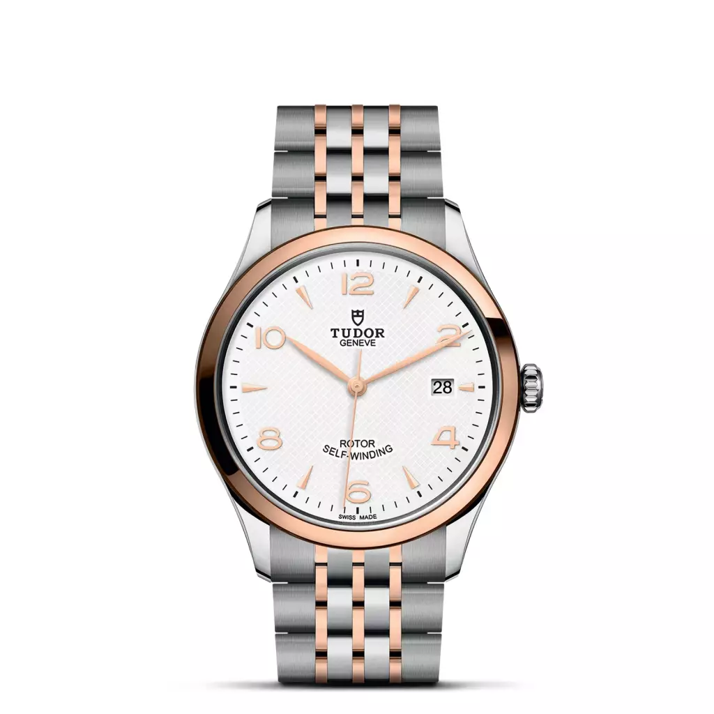 Prima maglia centrale in oro rosa, a ore 6 e 12. Maglie centrali restanti in acciaio rivestito da uno strato di oro rosa 18 ct. di 0,2 mm