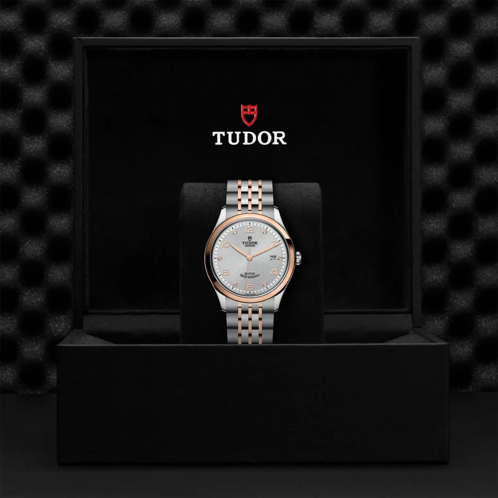 Corona di carica a vite in acciaio con il logo TUDOR in rilievo