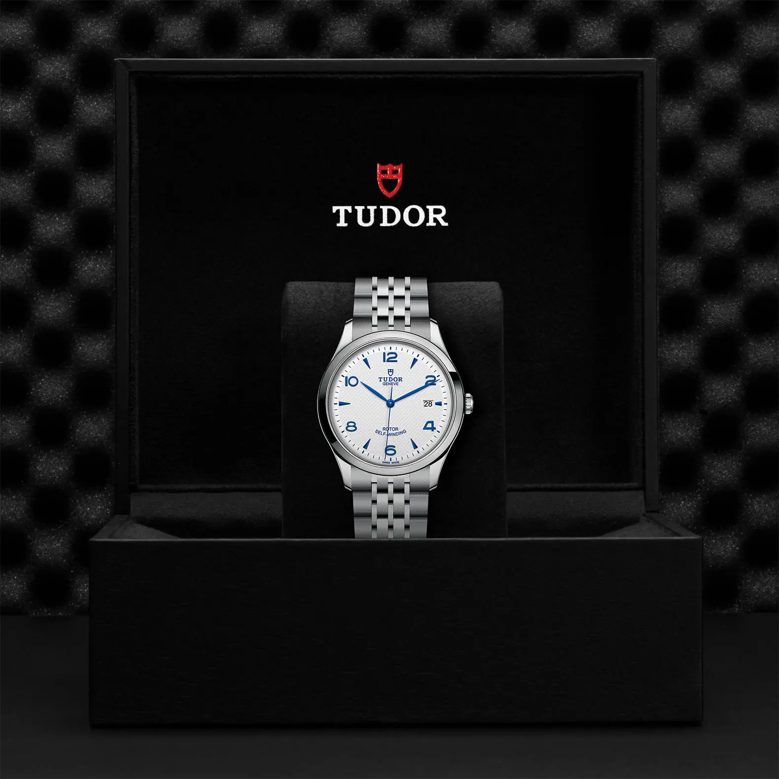 Cassa in acciaio, 41 mm, quadrante opalino e blu