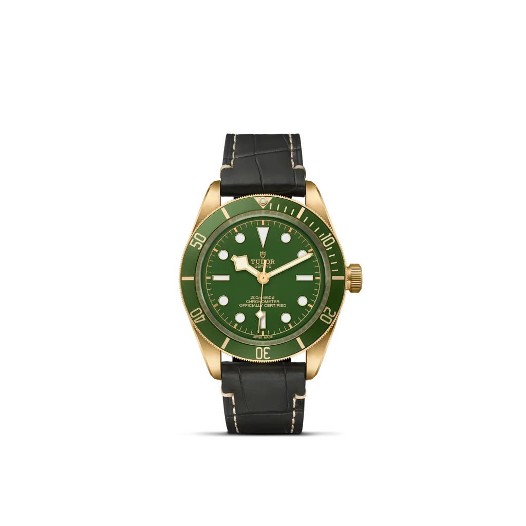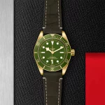 Cinturino addizionale in tessuto verde con banda color oro e fibbia ad ardiglione in oro giallo 18 ct., incluso nell’astuccio