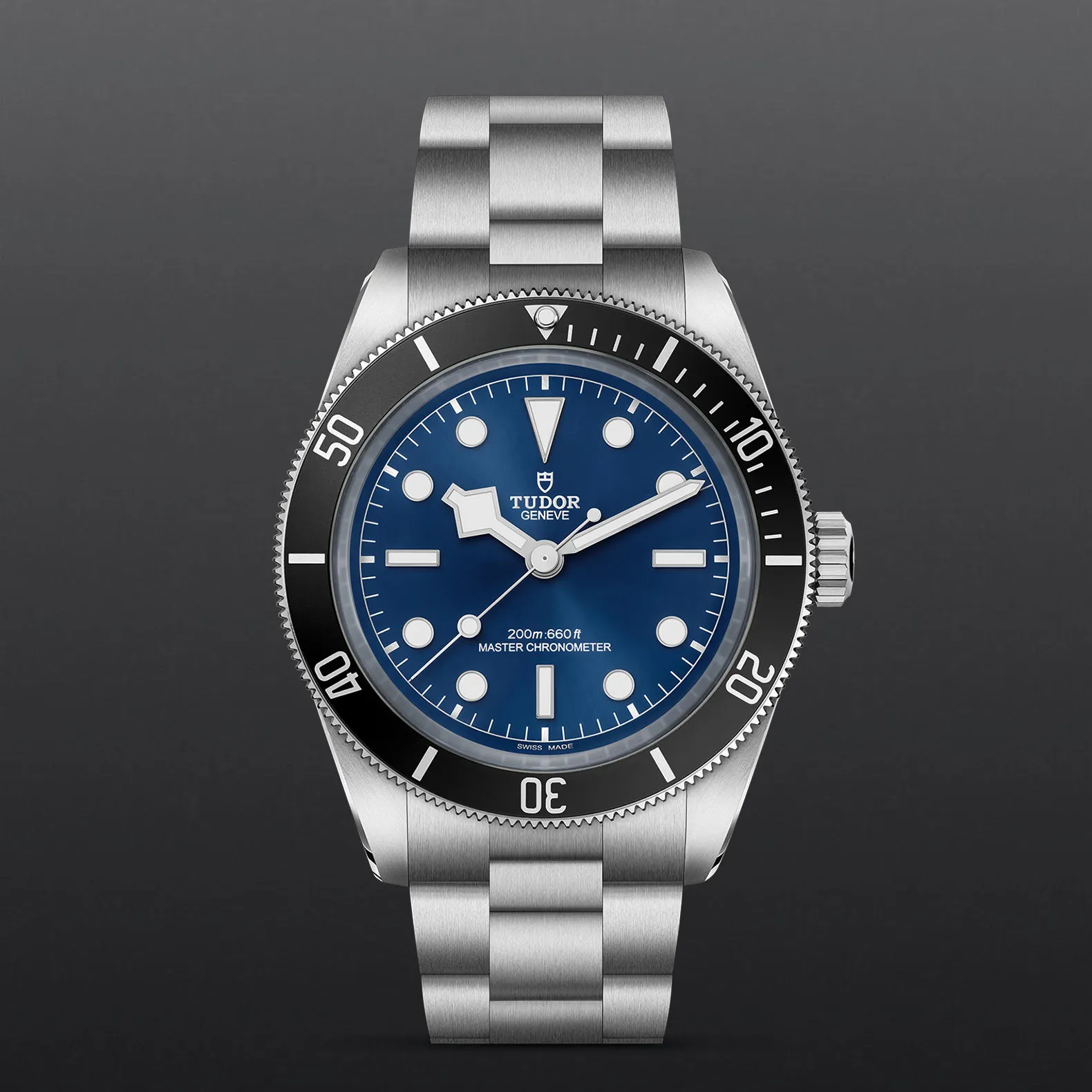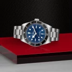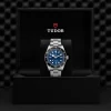 Quadrante “blu TUDOR”, finitura soleil, bombato, con indici delle ore applicati.
