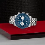 Per celebrare i 50 anni dei suoi cronografi, TUDOR lanciava il modello Black Bay Chrono in acciaio con una cassa rielaborata e due opzioni di quadrante con contatori a contrasto, nella più pura tradizione dei cronografi sportivi. Da oggi, il modello offre anche la possibilità di scegliere tra due opzioni di bracciale, a tre maglie o a cinque maglie, entrambe con chiusura TUDOR “T-fit”.