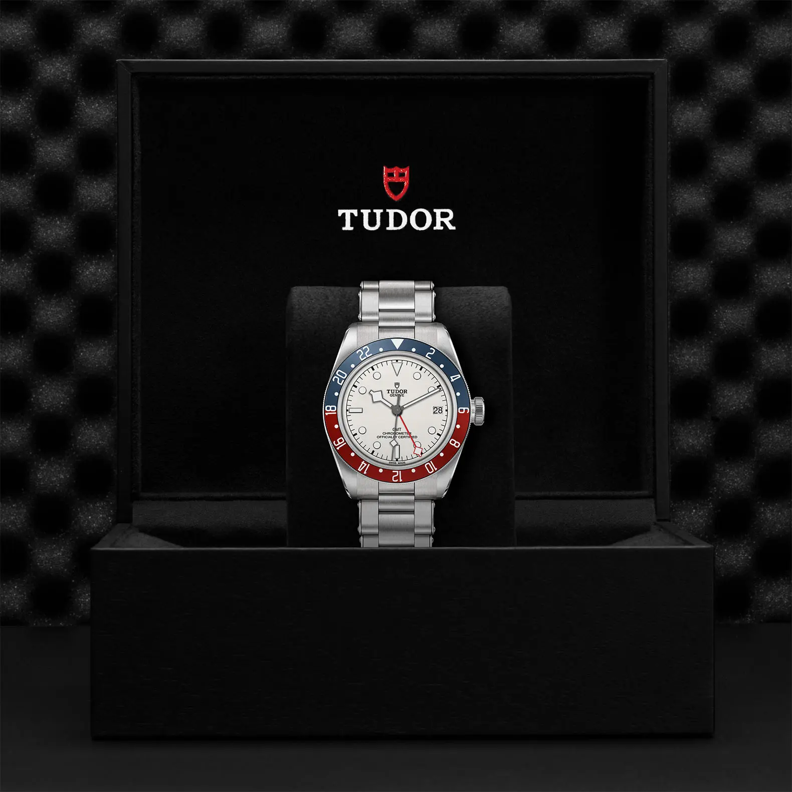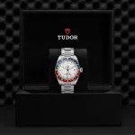Corona di carica a vite in acciaio con la rosa TUDOR in rilievo e con tubo della corona in acciaio satinato con lavorazione circolare
