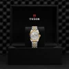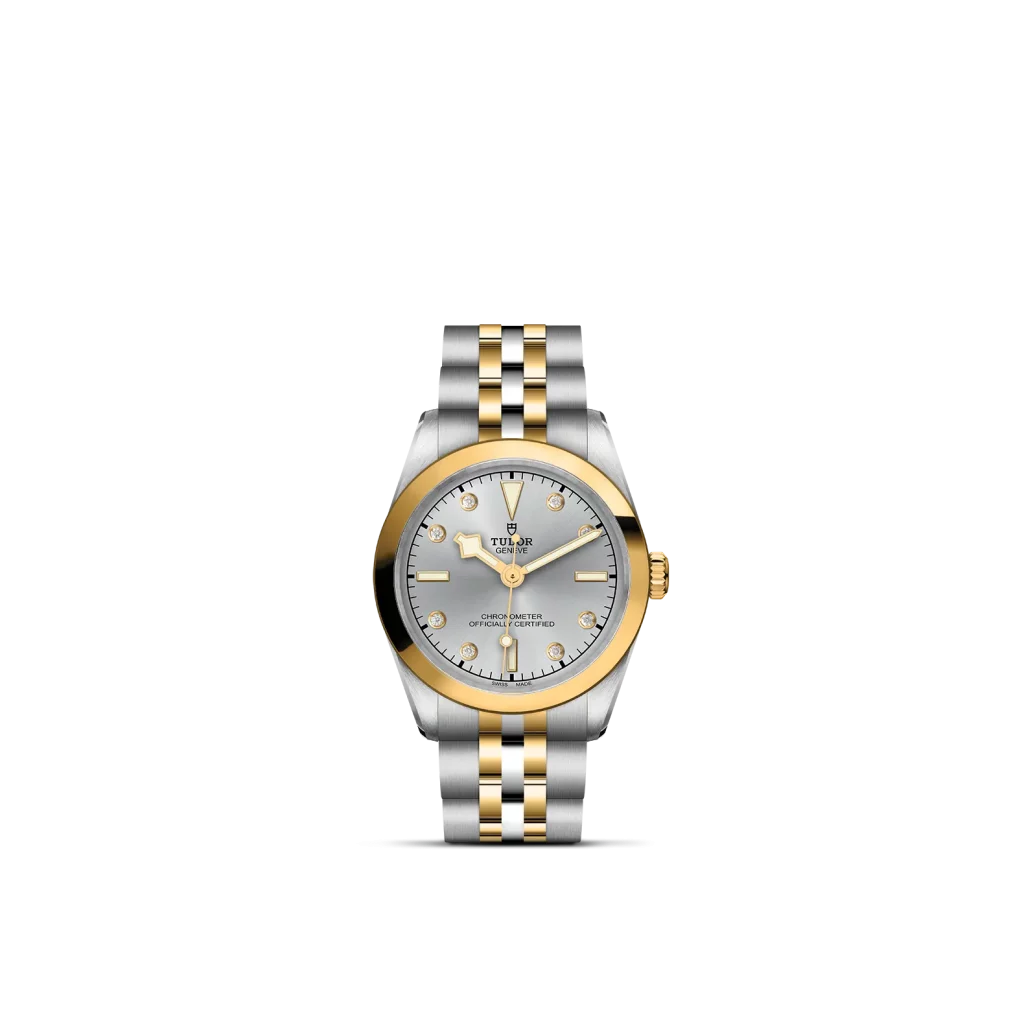 Prime maglie centrali in acciaio o in oro giallo massiccio. Maglie centrali restanti in acciaio o acciaio rivestito da uno strato di oro giallo di 0,2 mm. Chiusura pieghevole TUDOR “T‑fit” con fermaglio di sicurezza. Il logo sul fermaglio è realizzato in oro giallo massiccio