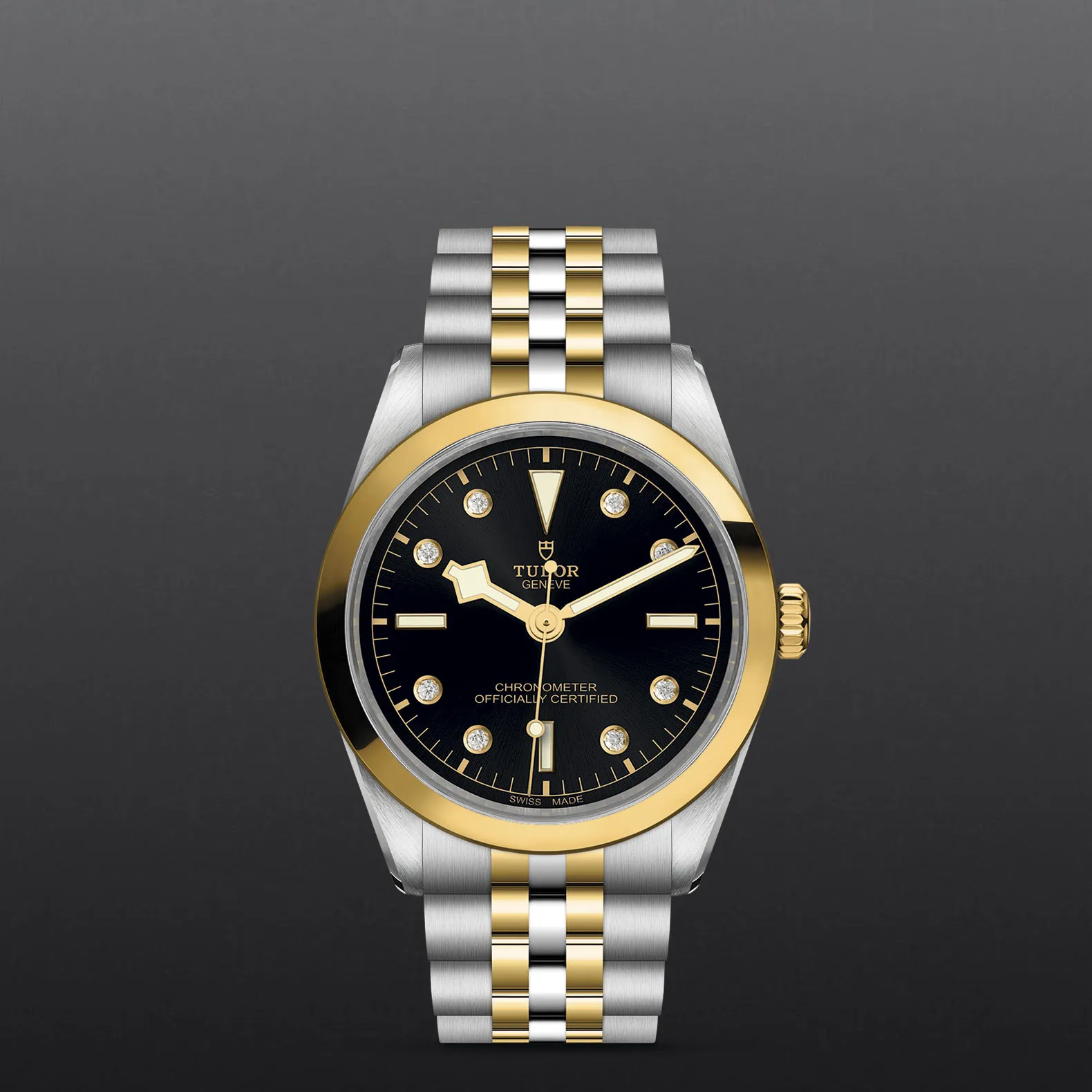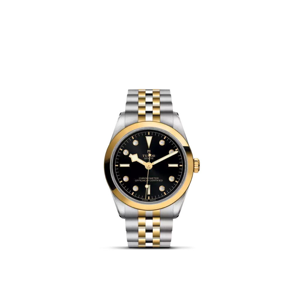 Prime maglie centrali in acciaio o in oro giallo massiccio. Le altre maglie centrali sono costituite da un’anima in acciaio rivestita da 0,2 mm di oro giallo. Chiusura pieghevole TUDOR “T-fit” con fermaglio di sicurezza. Il logo sul fermaglio è realizzato.