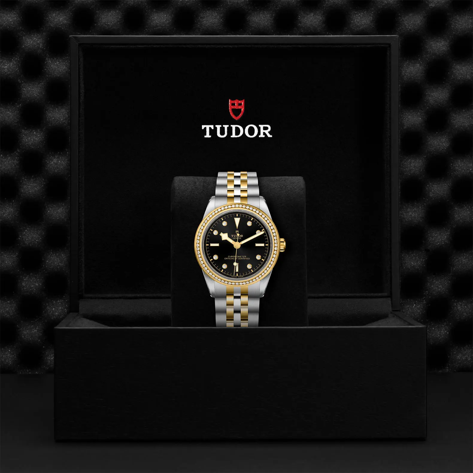 Corona di carica a vite con la rosa TUDOR in rilievo. Acciaio rivestito da uno strato di oro giallo 18 ct. di 0,1 mm