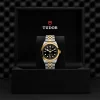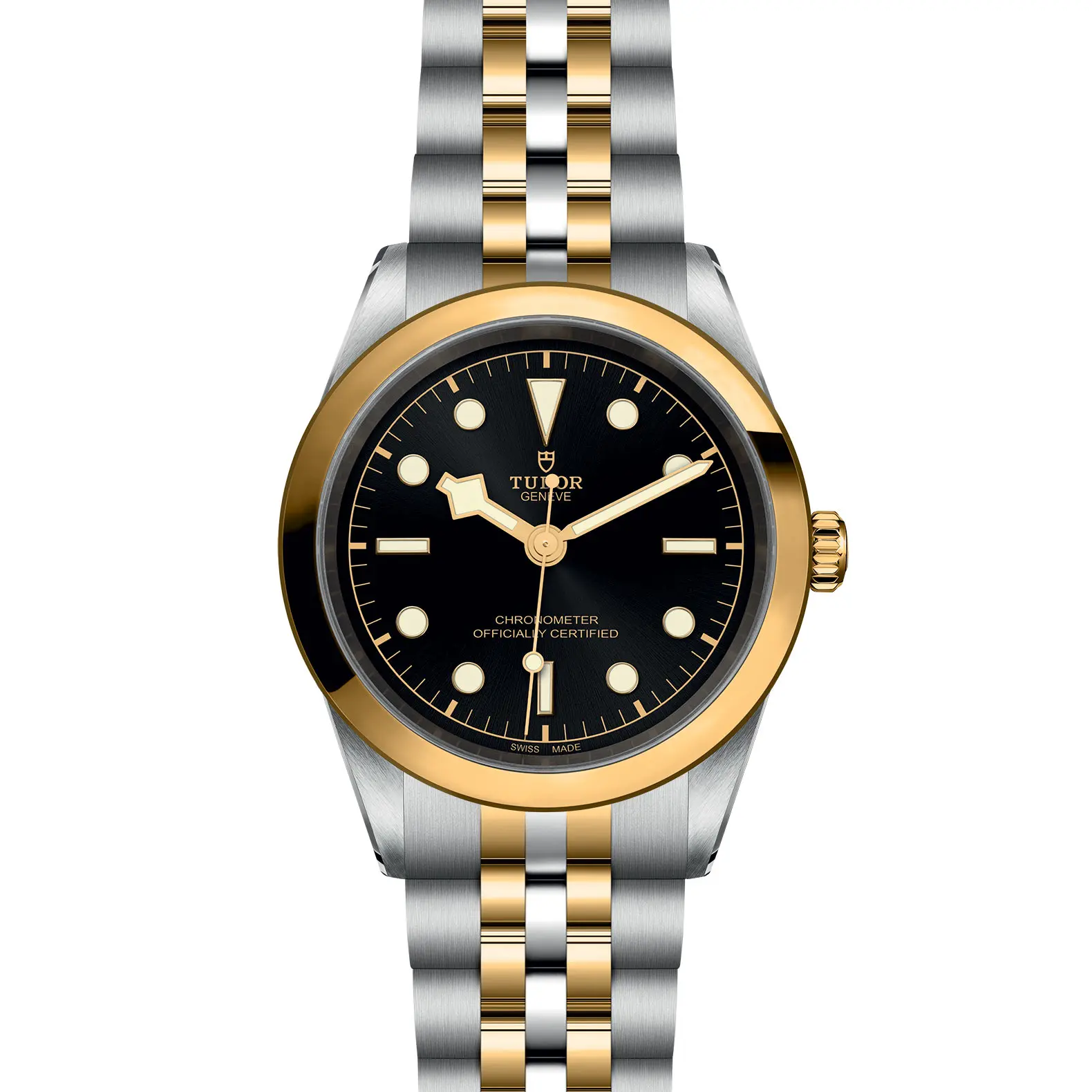 Maglie centrali a ore 6 e 12 in oro giallo. Maglie centrali restanti in acciaio rivestito da uno strato di oro giallo 18 ct. di 0,2 mm. Chiusura pieghevole “T-fit” con fermaglio di sicurezza. Il logo sul fermaglio è realizzato in oro giallo
