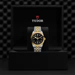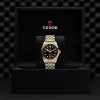 Maglie centrali a ore 6 e 12 in oro giallo. Maglie centrali restanti in acciaio rivestito da uno strato di oro giallo 18 ct. di 0,2 mm. Chiusura pieghevole “T-fit” con fermaglio di sicurezza. Il logo sul fermaglio è realizzato in oro giallo
