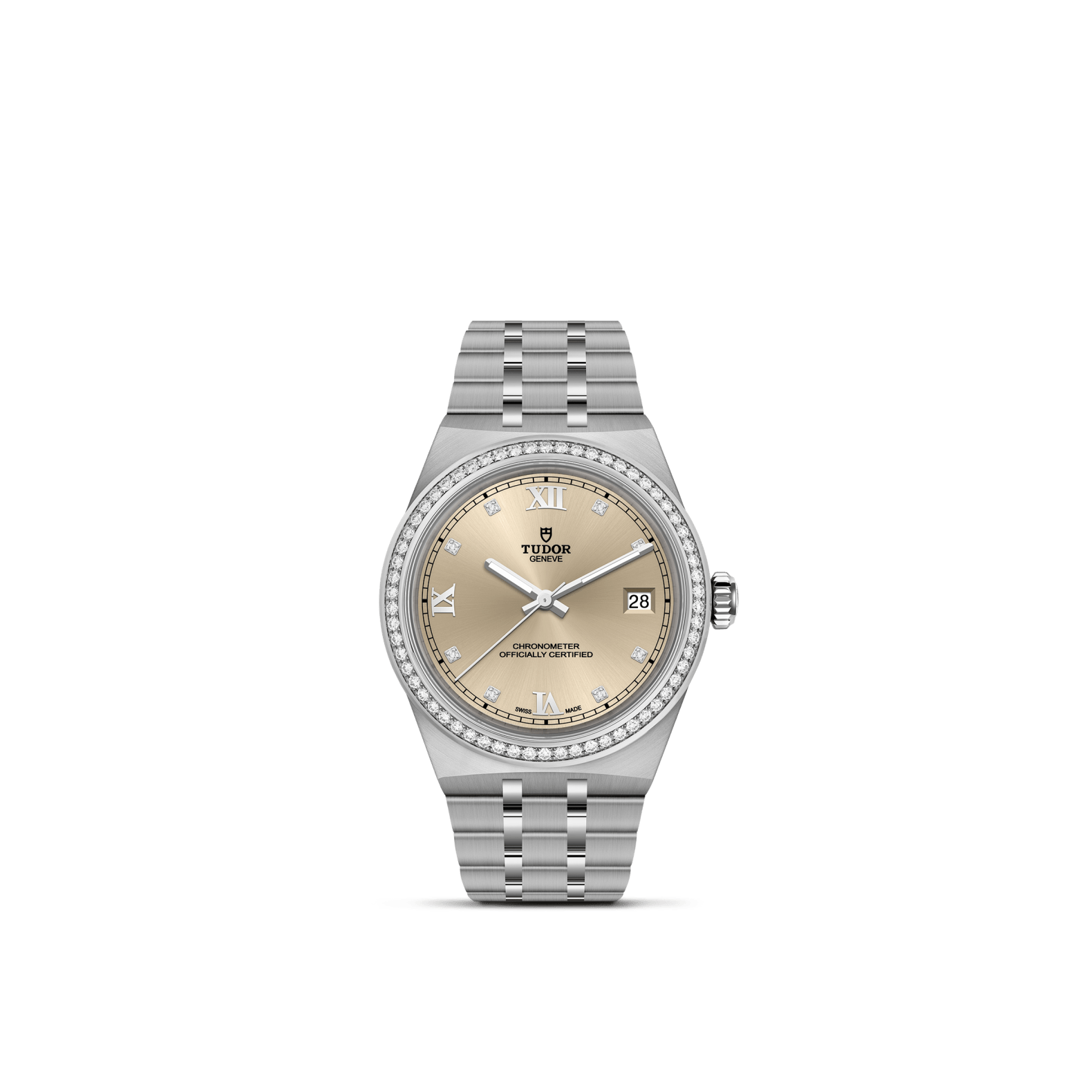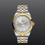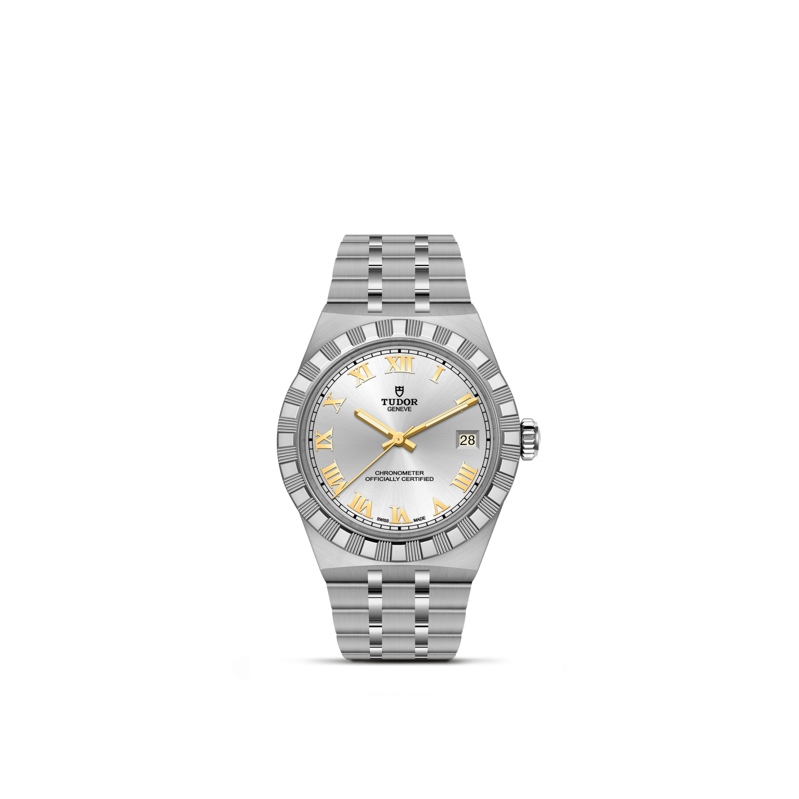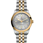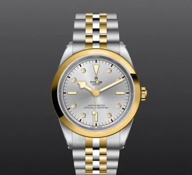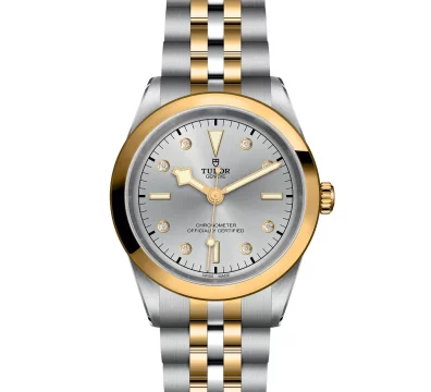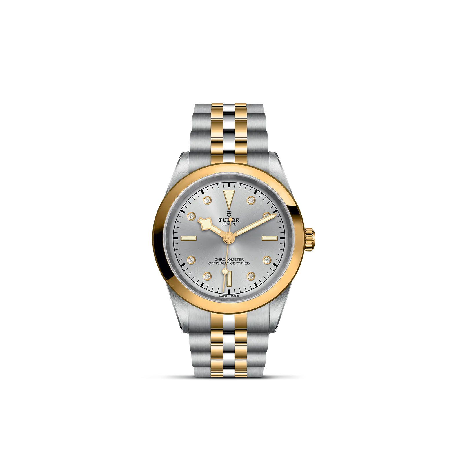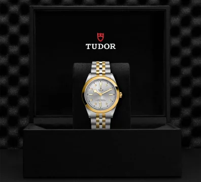 Prime maglie centrali in acciaio o in oro giallo massiccio. Le altre maglie centrali sono costituite da un’anima in acciaio rivestita da 0,2 mm di oro giallo. Chiusura pieghevole TUDOR “T?fit” con fermaglio di sicurezza. Il logo sul fermaglio è realizzato.