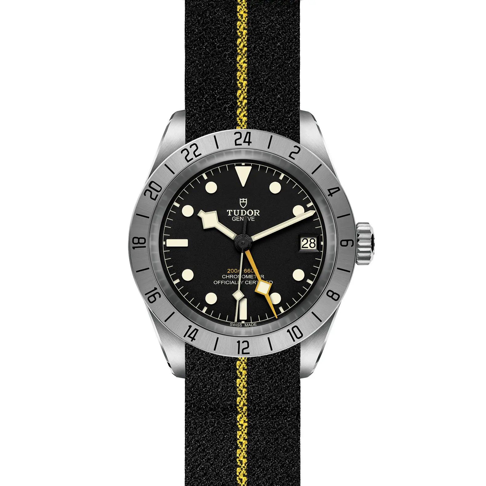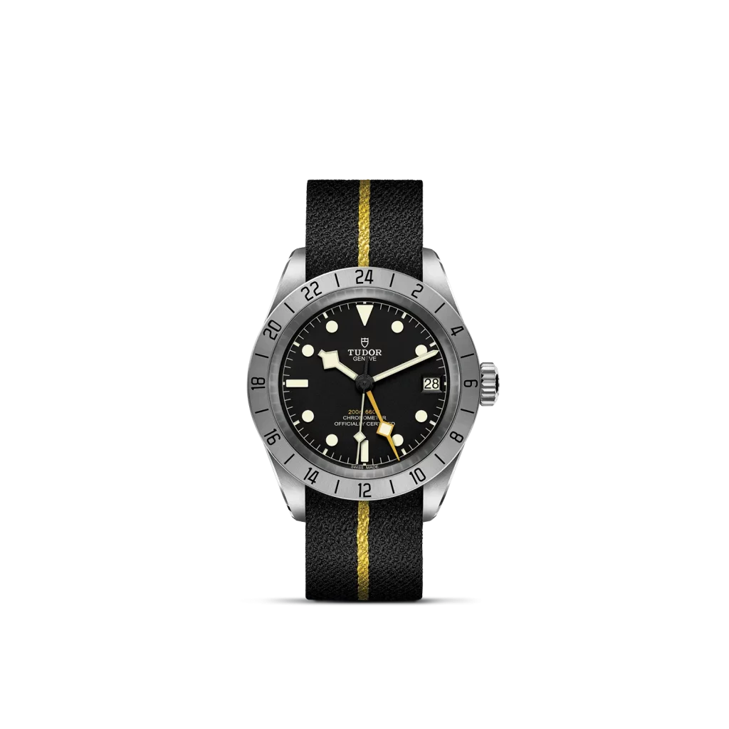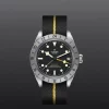 Cassa in acciaio, 39 mm, Cinturino in tessuto nero con banda gialla