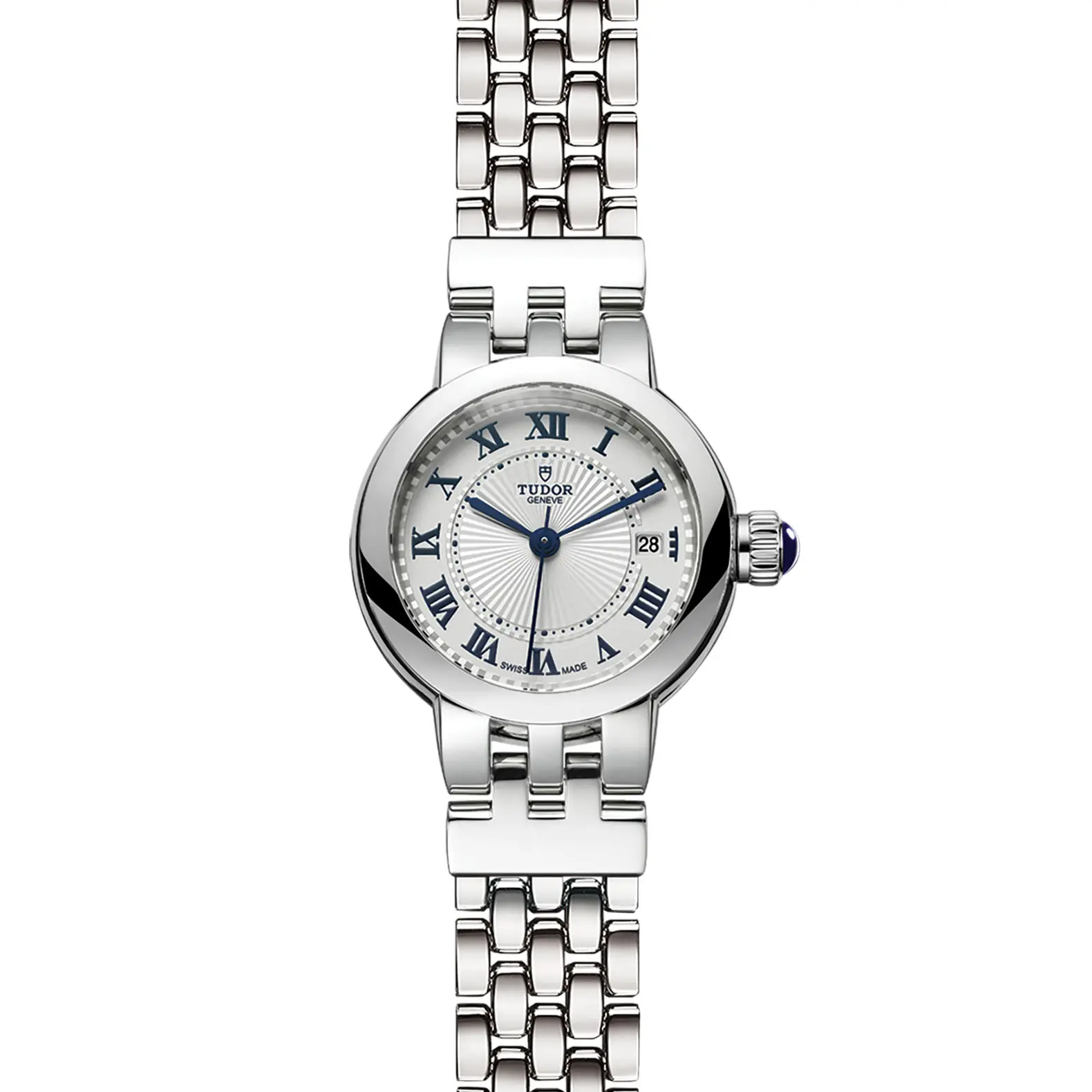 Corona di carica a vite in acciaio con cabochon blu trasparente