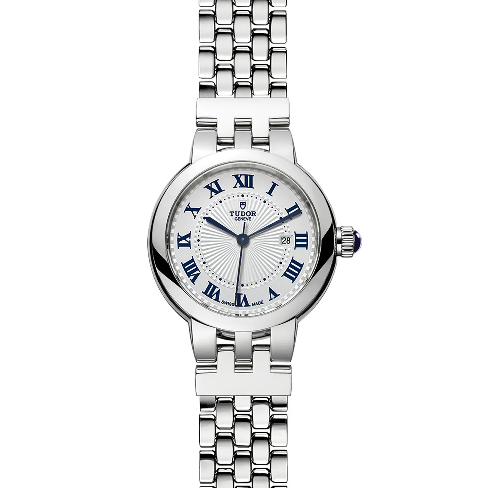 Corona di carica a vite in acciaio con cabochon blu trasparente
