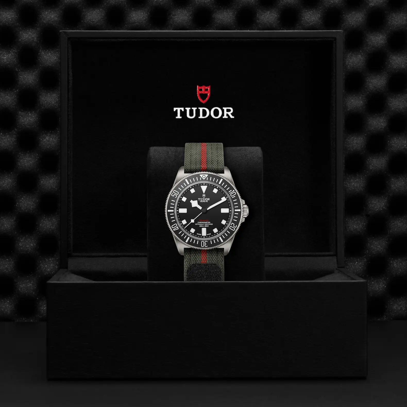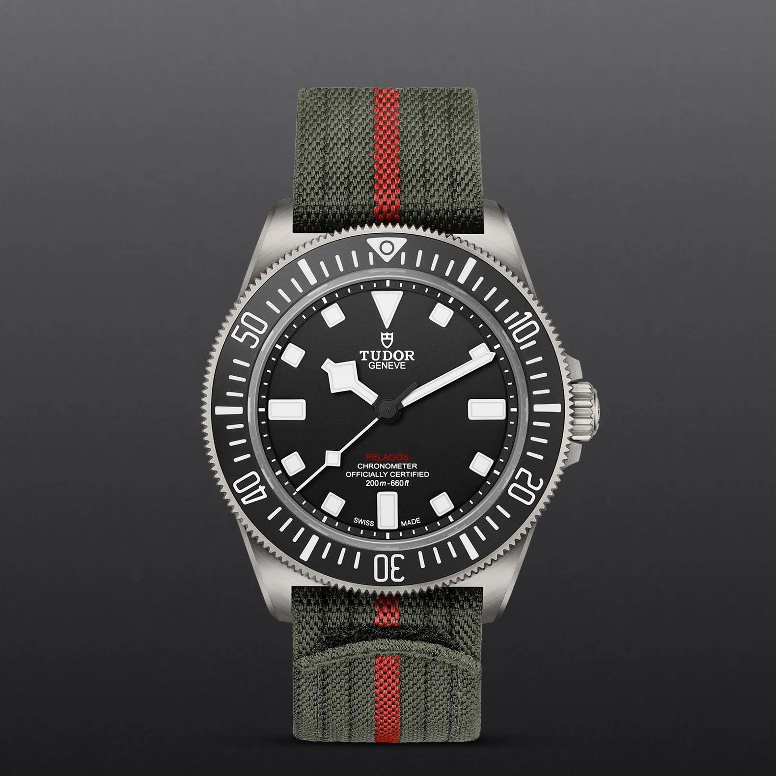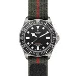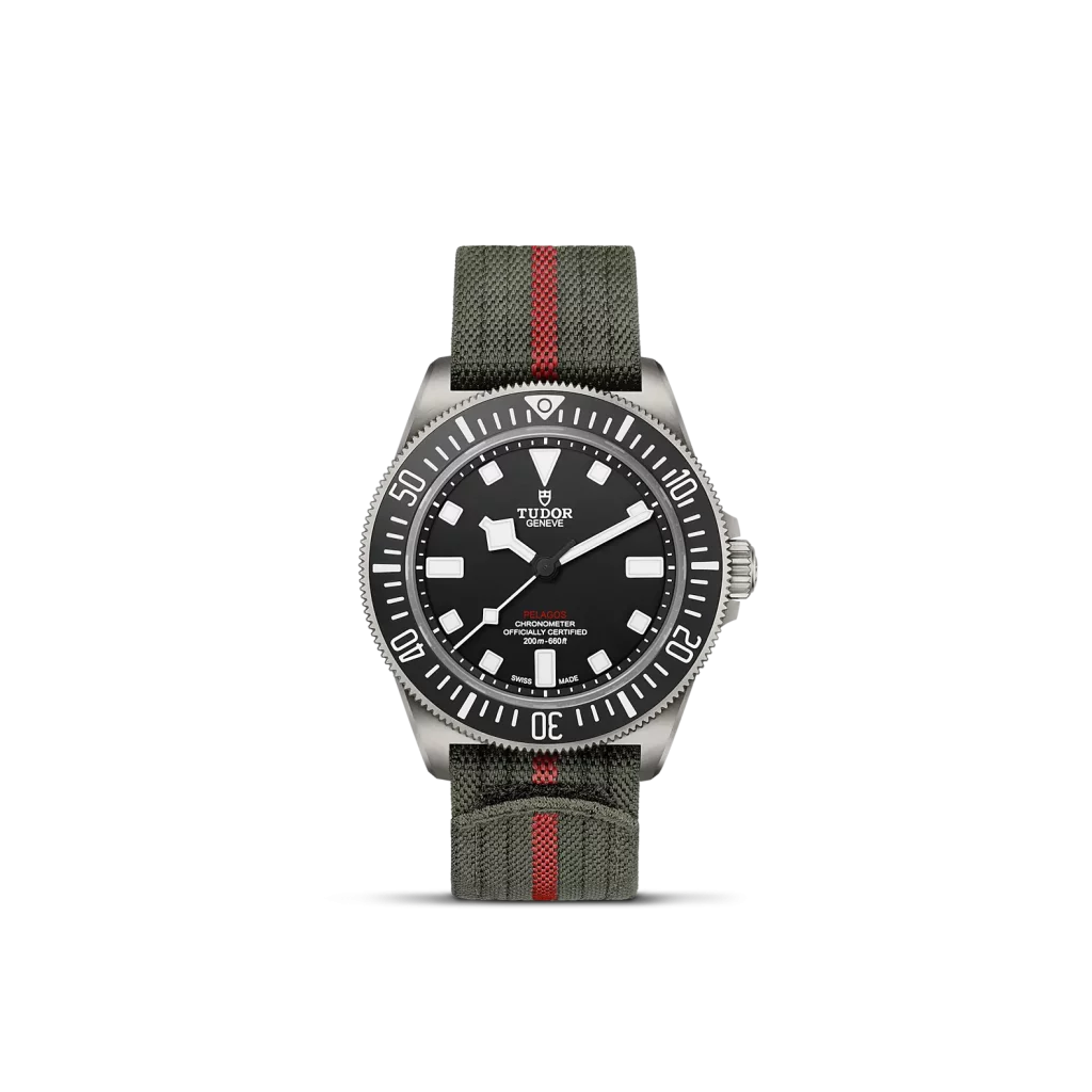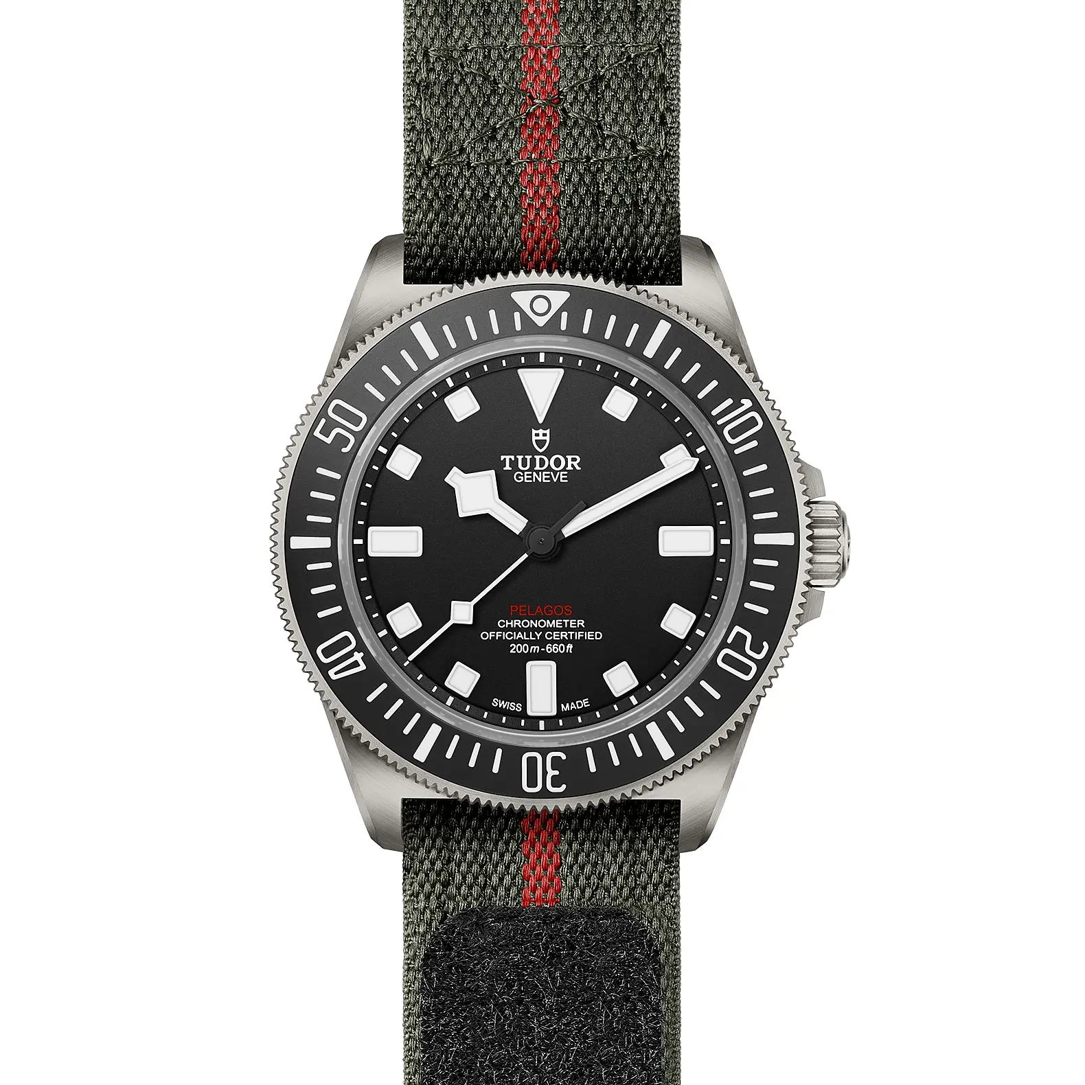 Cassa in titanio, 42 mm, Cinturino in tessuto verde con banda rossa