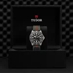 Cinturino addizionale in caucciù nero con motivo tessuto e fibbia ad ardiglione in titanio, incluso nell’astuccio
