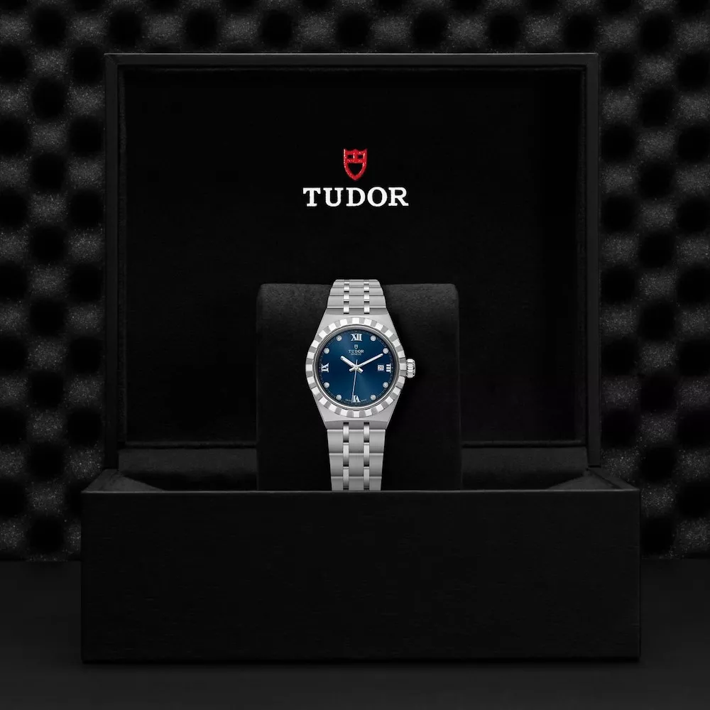 Blu, finitura soleil, con diamanti