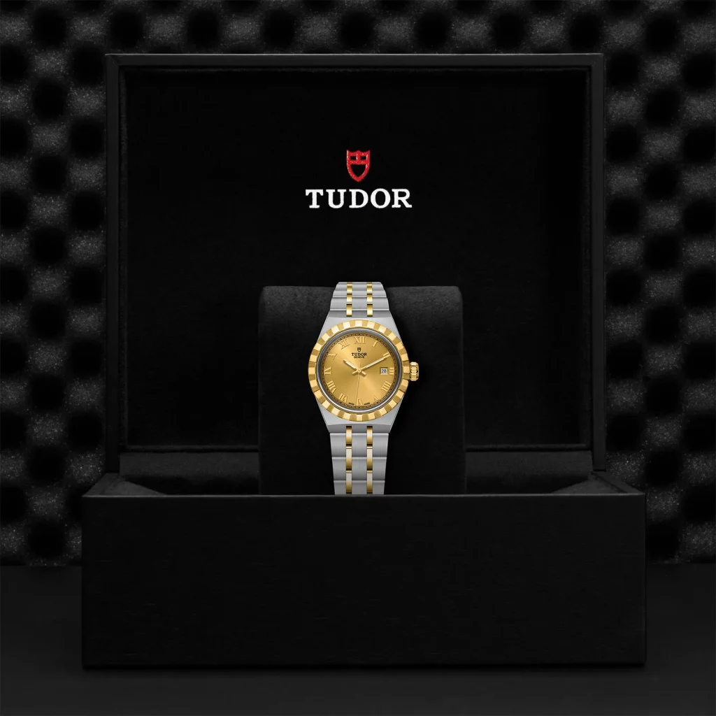 Corona di carica a vite con logo TUDOR. Acciaio rivestito da uno strato di oro giallo 18 ct. di 0,1 mm