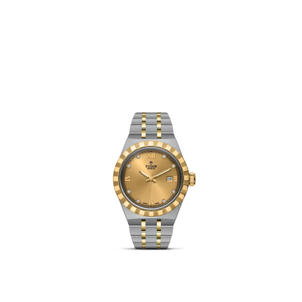 Corona di carica a vite con logo TUDOR. Acciaio rivestito da uno strato di oro giallo 18 ct. di 0,1 mm