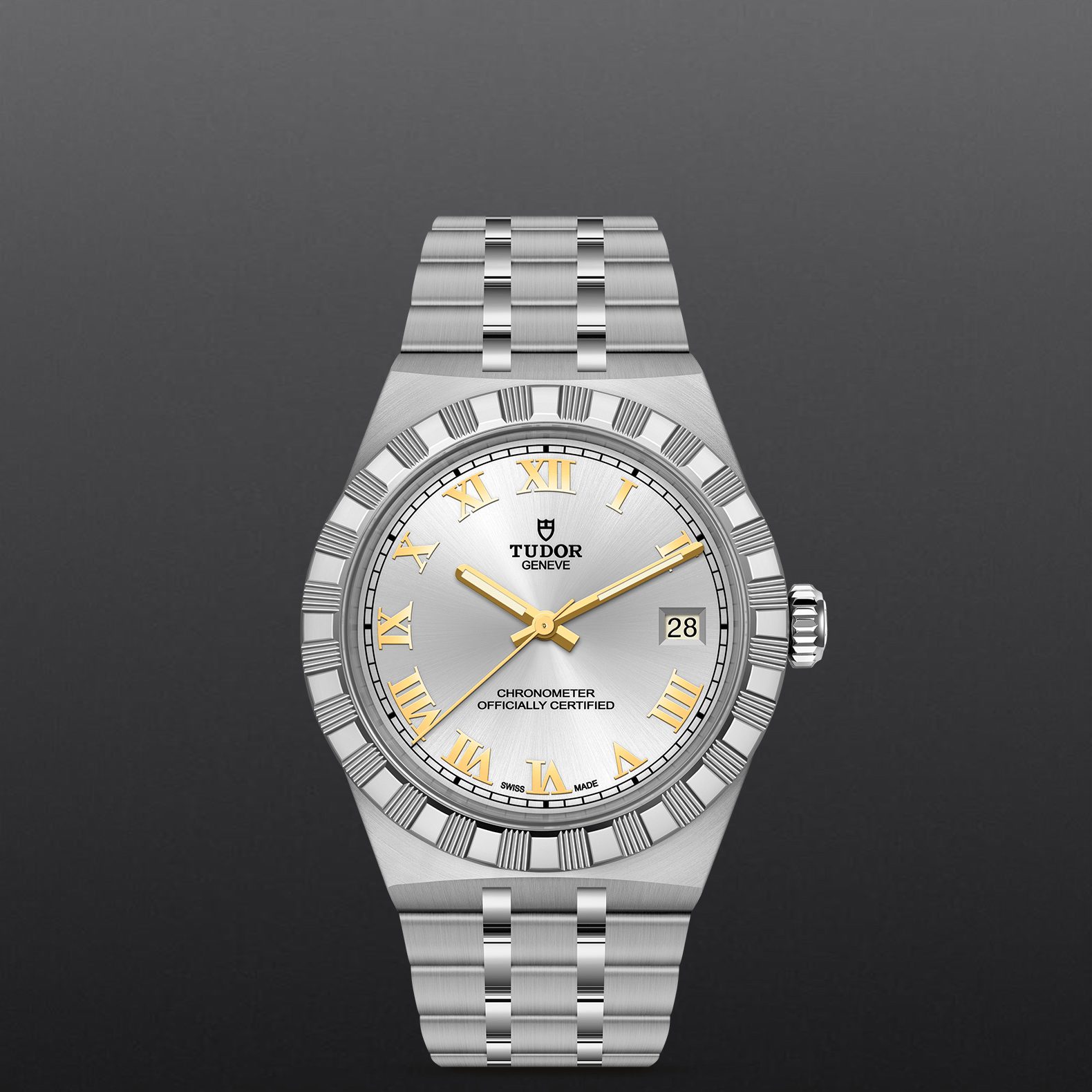 Il nome Royal fu usato per la prima volta da TUDOR negli anni ’50 per sottolineare la qualità superiore dei suoi orologi. La linea TUDOR Royal rientra nella tradizione del Marchio di proporre segnatempo dallo stile sportivo ed elegante, con movimenti automatici e bracciali integrati, ad un prezzo accessibile ma che non scendano a compromessi sulla qualità. Declinati in acciaio o in acciaio e oro e in tre misure con un’ampia varietà di quadranti, gli orologi di questa gamma sono tutti caratterizzati da un’estetica rinnovata, decisa e raffinata.