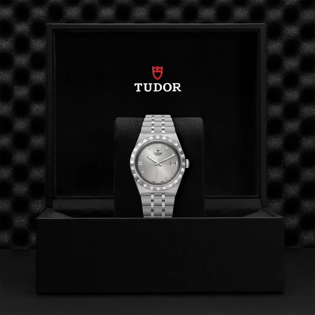 Bracciale a cinque maglie in acciaio, finitura lucida e satinata, con chiusura TUDOR “T‑fit”