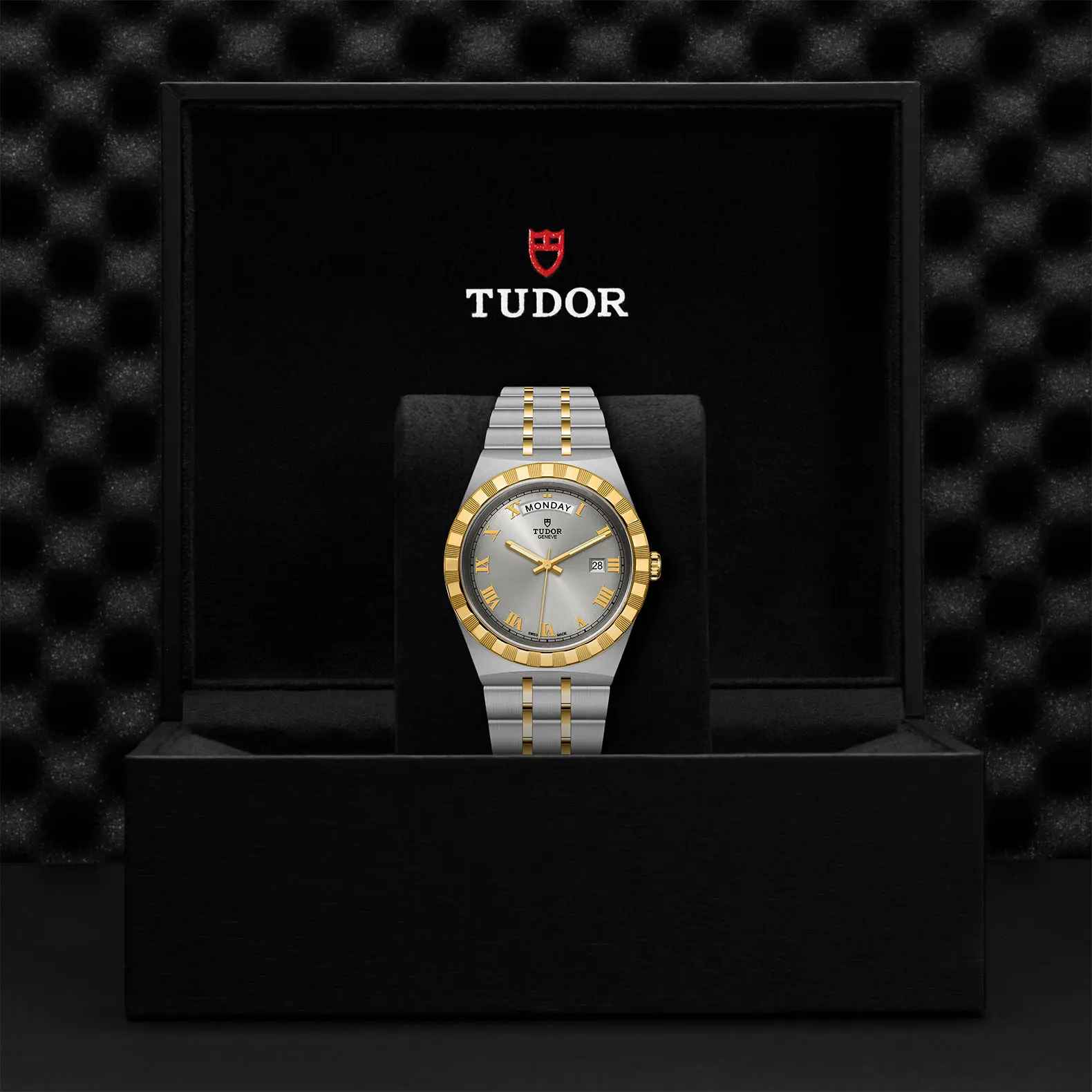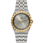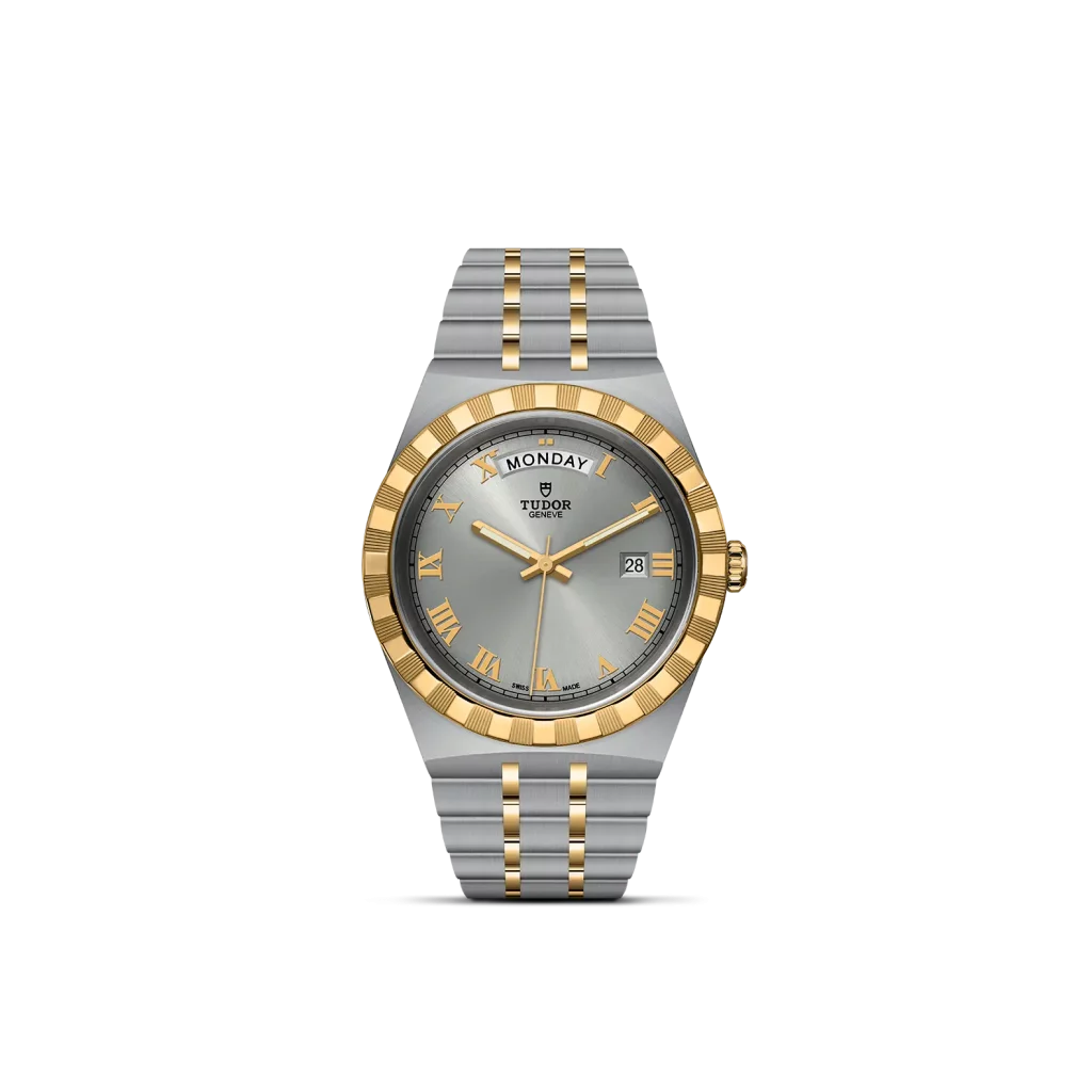 Il nome Royal fu usato per la prima volta da TUDOR negli anni ’50 per sottolineare la qualità superiore dei suoi orologi. La linea TUDOR Royal rientra nella tradizione del Marchio di proporre segnatempo dallo stile sportivo ed elegante, con movimenti automatici e bracciali integrati, ad un prezzo accessibile ma che non scendano a compromessi sulla qualità. Orologi dalle prestazioni tecniche all’avanguardia e l’estetica raffinata, al crocevia tra i modelli classici e quelli sportivi, i segnatempo di questa linea sono disponibili in acciaio o acciaio e oro e proposti in quattro misure con una vasta selezione di quadranti.