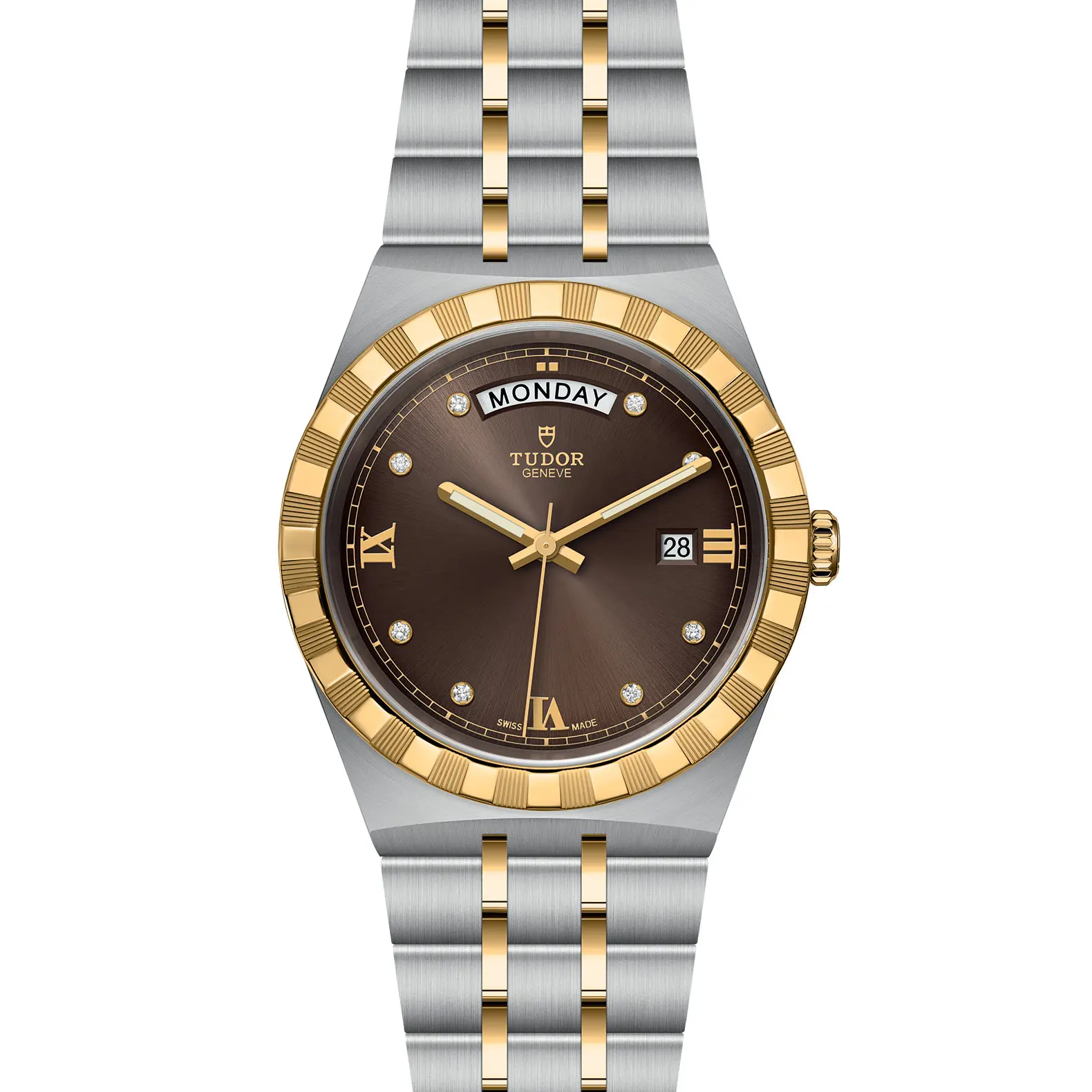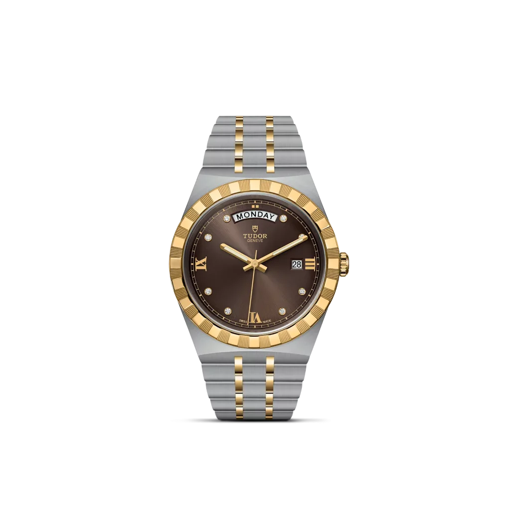 Il nome Royal fu usato per la prima volta da TUDOR negli anni ’50 per sottolineare la qualità superiore dei suoi orologi. La linea TUDOR Royal rientra nella tradizione del Marchio di proporre segnatempo dallo stile sportivo ed elegante, con movimenti automatici e bracciali integrati, ad un prezzo accessibile ma che non scendano a compromessi sulla qualità. Orologi dalle prestazioni tecniche all’avanguardia e l’estetica raffinata, al crocevia tra i modelli classici e quelli sportivi, i segnatempo di questa linea sono disponibili in acciaio o acciaio e oro e proposti in quattro misure con una vasta selezione di quadranti.